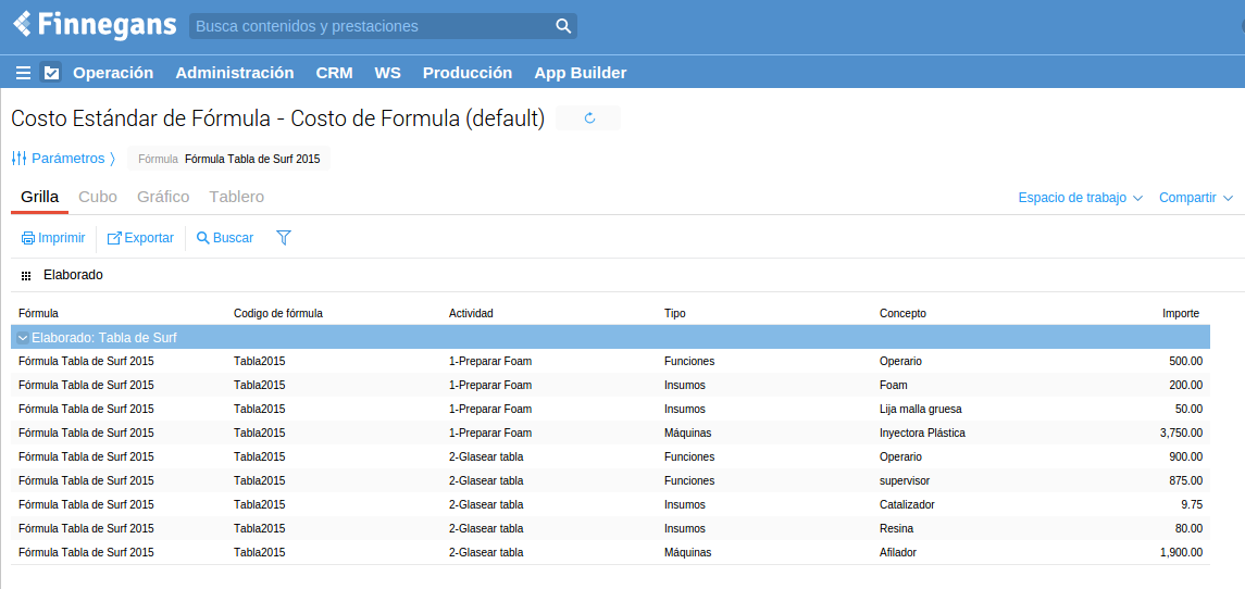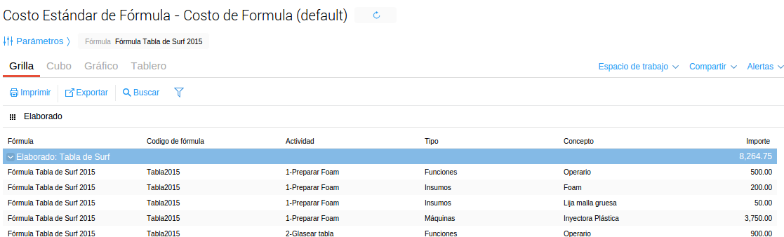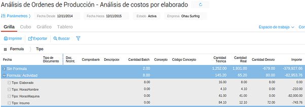- Fórmulas de producción