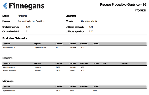 Finnegans Manufactura brinda las herramientas necesarias para poder definir los procesos productivos y fórmulas de producción, lo que permite estandarizar la producción simplificando al máximo la gestión.