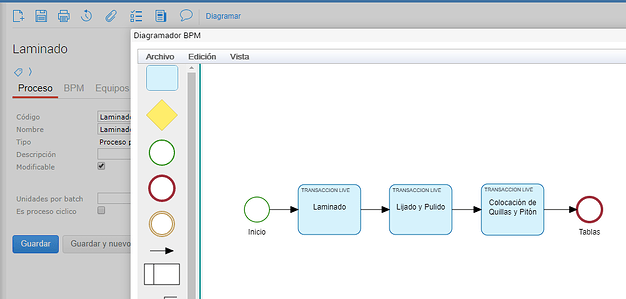 Una vez que se completa esta información se guarda la transacción y ya se está en condiciones de comenzar a diagramar el proceso. Para ello, se hacer click en el botón “Diagramar” de la toolbar.