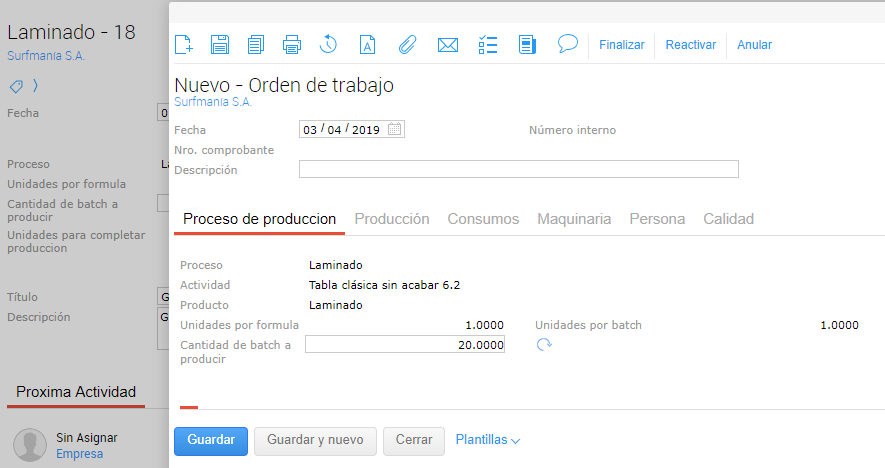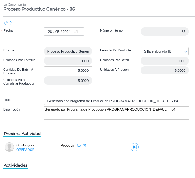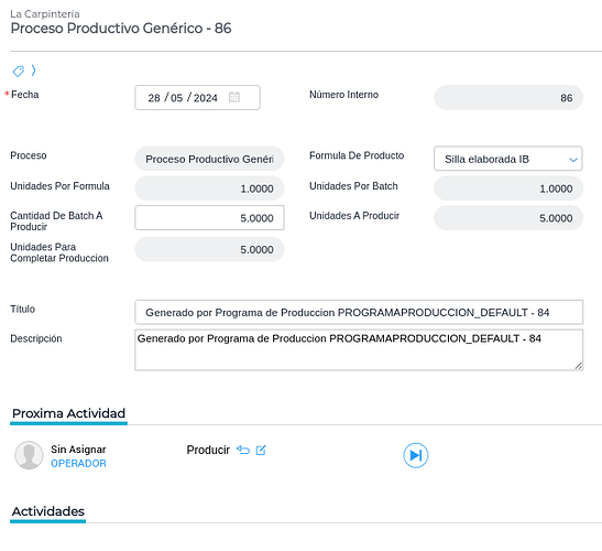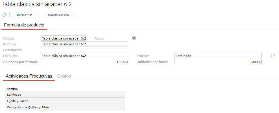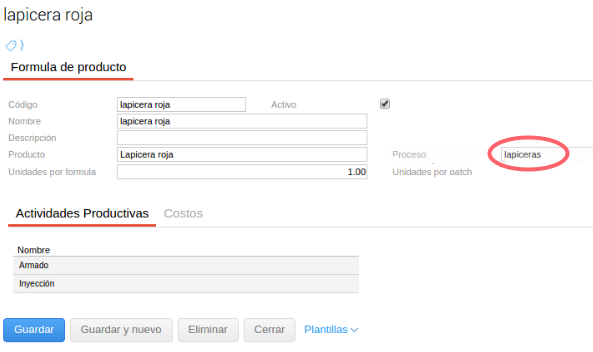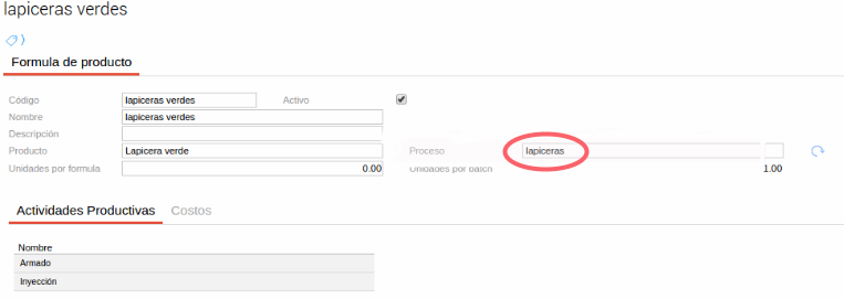 A su vez, este proceso se debe indicar en cada una de las fórmulas de producción para poder definir qué productos se van a producir y qué recursos serán necesarios en cada actividad.