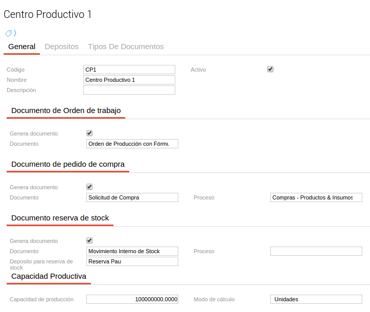 - Capacidad a utilizar: capacidad a utilizar del centro productivo.