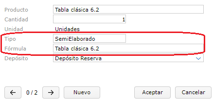 En el caso en que el producto a utilizar sea un semi elaborado se debe configurar de la siguiente manera: