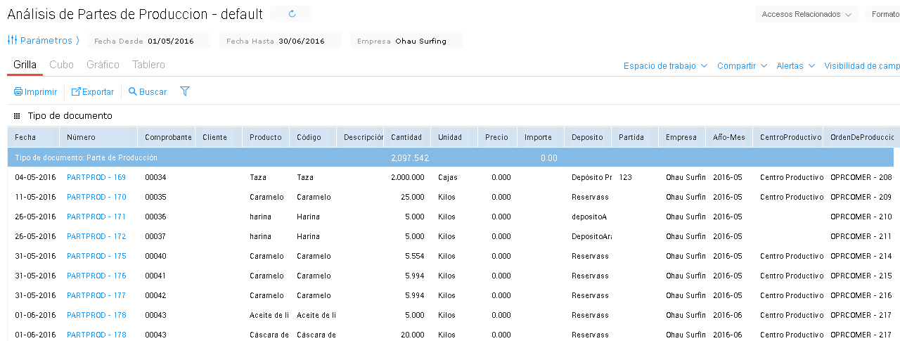 - Análisis de partes de producción