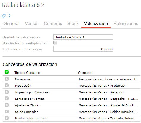 Para los casos en que el producto se valorice, se deben completar los conceptos correspondientes en la solapa “Se valoriza”.