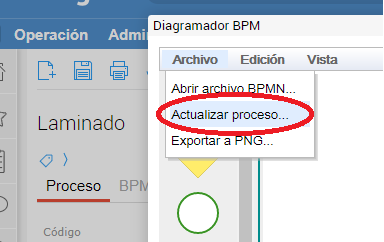 Una vez finalizada la edición del proceso se deben guardar los cambios desde Archivo→ Actualizar proceso.