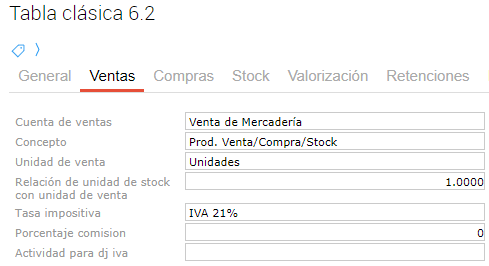 Además, en la solapa “Se vende” se debe completar la cuenta y la unidad de medida: Por ejemplo: