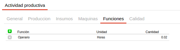 En la solapa “Máquinas” y “Funciones” se pueden indicar los recursos y las cantidades, por ejemplo:
