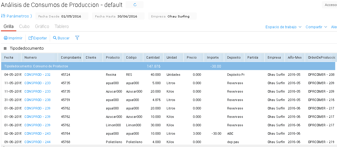 Por último, el sistema genera de forma automática un parte de producción, donde se da de alta el elaborado, y un parte de consumo donde se dan de baja las unidades de insumos consumidas.