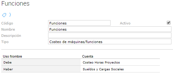 Cada función puede tener asociado un tarifario a partir del cual se obtendrá el costo.