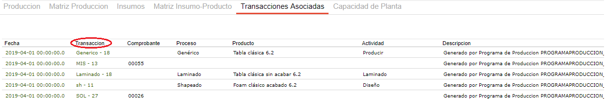 - Rama: muestra la transacción asociada al producto en caso de que la tuviera, como el pedido de venta.