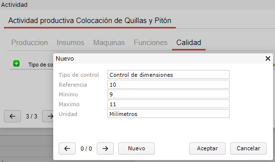 También se puede indicar un control de calidad en caso de ser necesario, se configura de la siguiente manera: