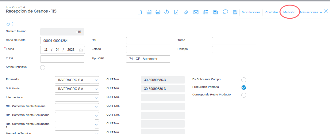 Esta funcionalidad tiene como objetivo poder registrar Mediciones de Granos (calidad) una vez que la Carta de Porte se encuentra certificada, posteriormente la liquidación tendrá en cuenta el grado y factor según la medición de calidad.
