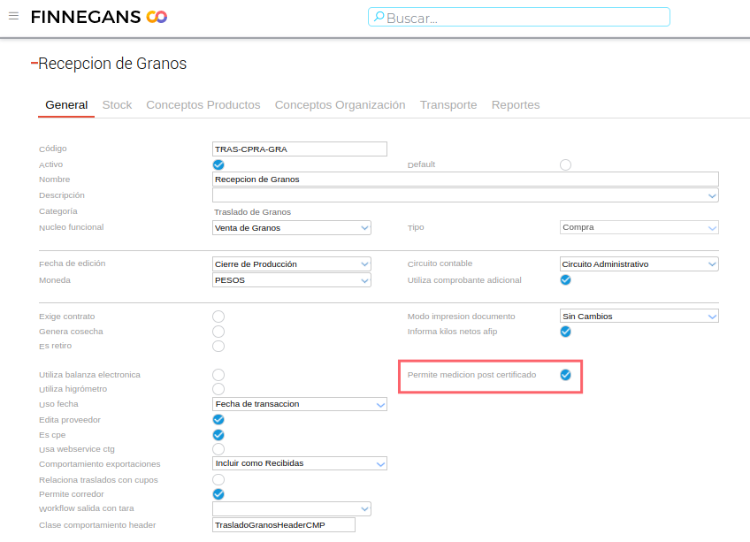 Para usar esta funcionalidad las mediciones de granos no deben mover stock.