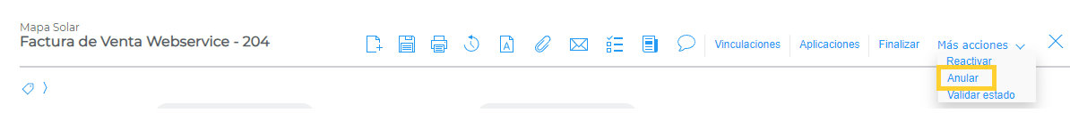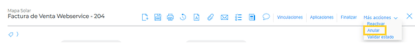 Para anular un comprobante se presiona el botón Anular. Si la petición se efectúa de manera correcta, el estado cambia a Anulación pendiente
