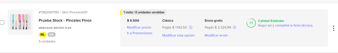 Una vez actualizado el stock, verificar que la publicación de ML esté Activa.