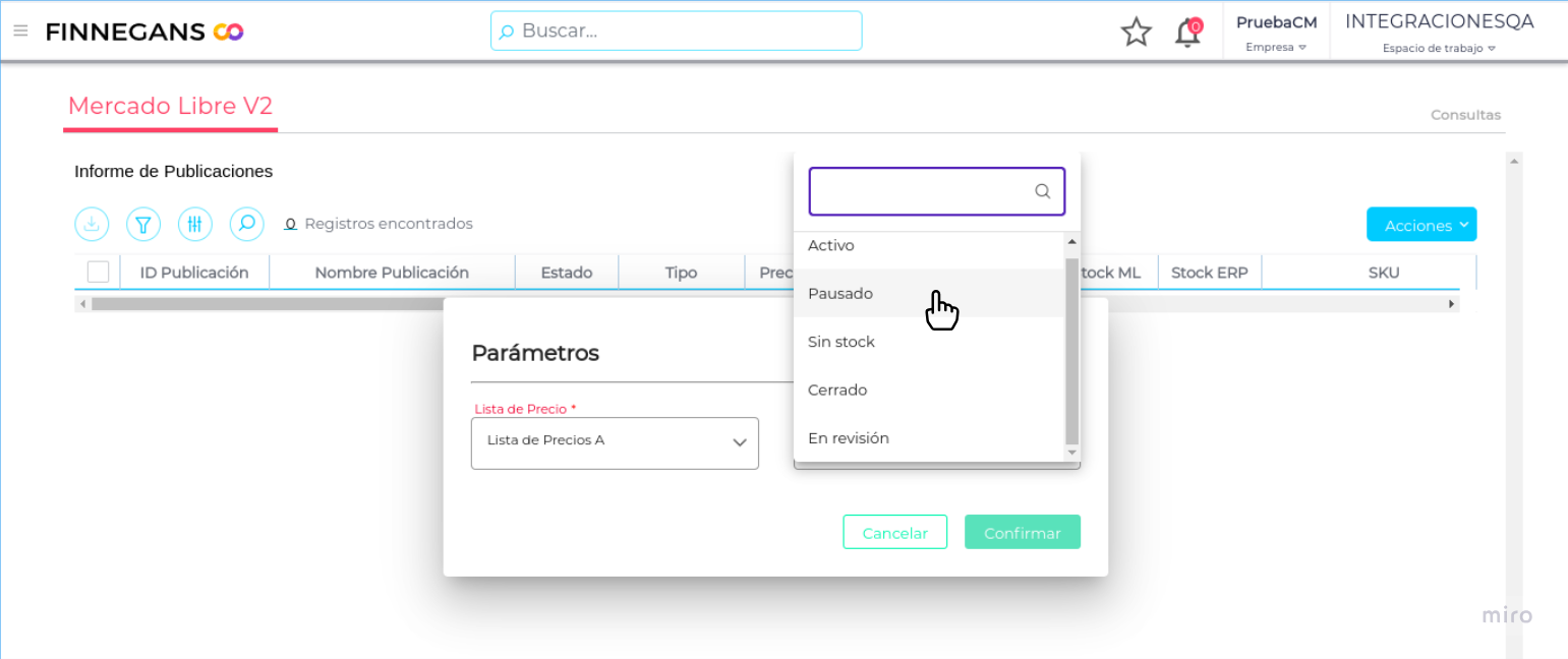 Esta funcionalidad sirve para activar publicaciones pausadas cuando se actualiza su stock en ERP. Es decir, publicaciones que se encuentran “Pausadas” por falta de Stock, al ajustarse éstas en ERP, automáticamente se actualizará el Stock de ML y la publicación se Activará.