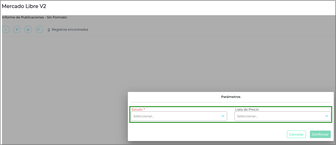 Al ingresar en el Informe de Publicaciones, se pedirá completar los siguientes parámetros: