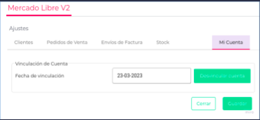 En este apartado se muestra la fecha de Vinculación de la Sucursal con la cuenta de ML.