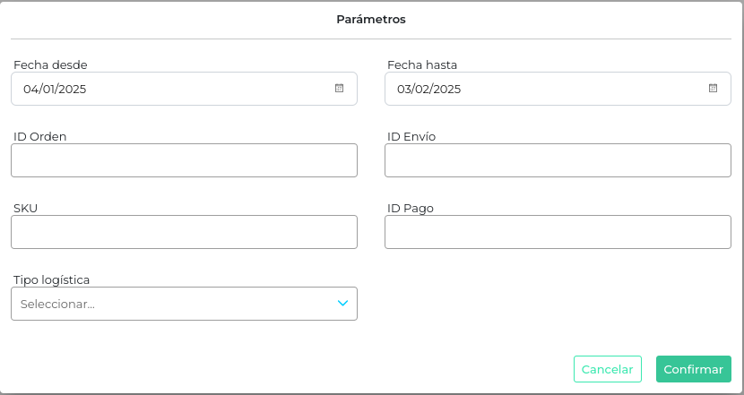 Visualizar información relacionada a la logística, como tipo logística, medio de entrega, cod seguimiento, estado envío, Fecha etiqueta Fecha despacho, Fecha entrega y Fecha cancelación.