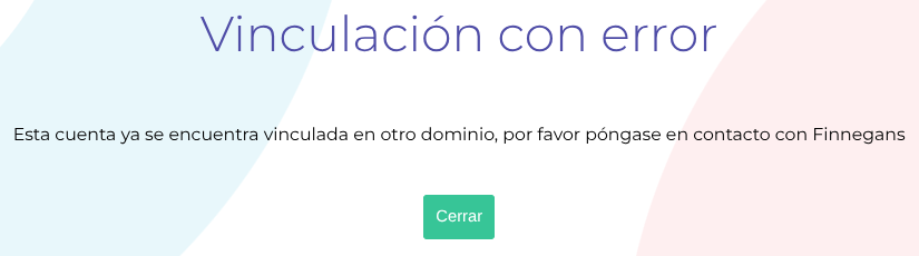 Nota: Si la cuenta que intentas vincular ya se encuentra asociada a otro dominio, aparecerá un cartel de error. Corroborar que la cuenta a vincular sea la correcta.