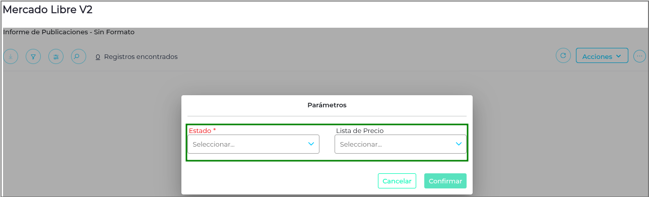 Estado: filtra las publicaciones de Mercado Libre por su estado, las cuales pueden ser: