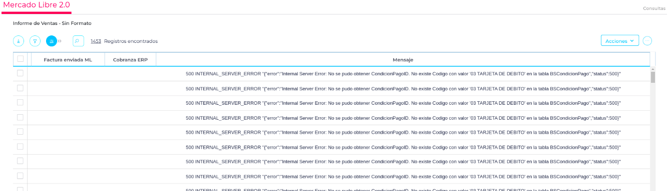 Las ventas no ingresaron porque falta configurar la Condición de Pago en la aplicación de Mercado Libre.