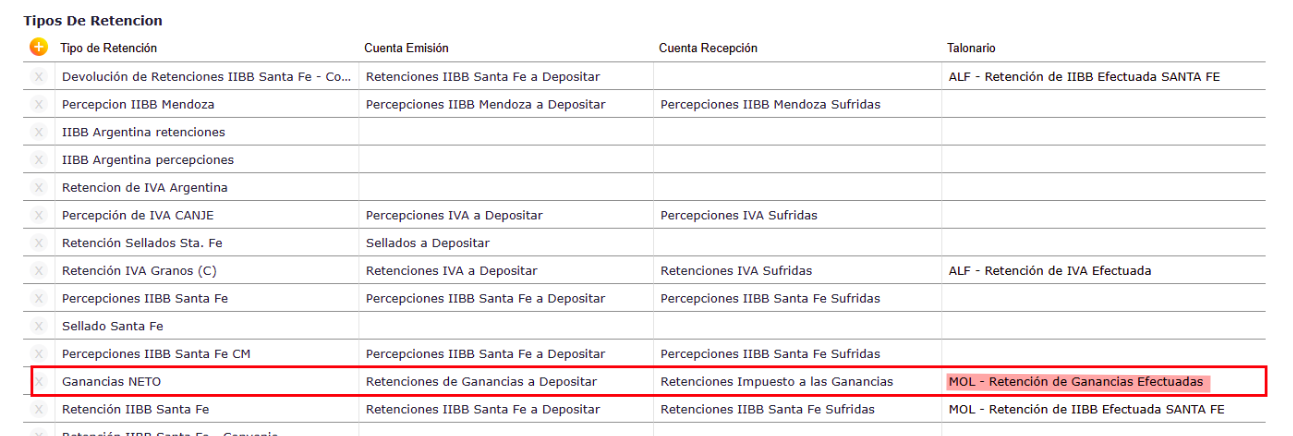 Asignar el talonario correcto al nuevo tipo de retención.