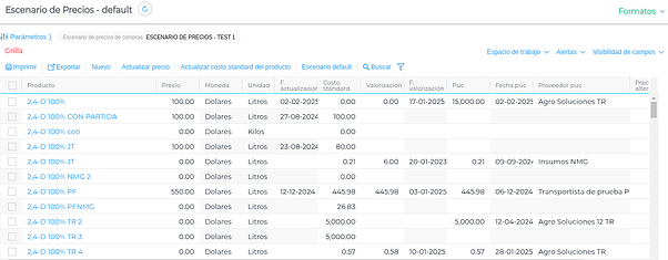 Asignarlo en el modelo, será de utilidad, ya que desde allí se pueden establecer diferentes alternativas de precios que servirán a la hora de presupuestar la gestión. Desde el escenario también se permite la comparación con otros y así como con los precios VNR, de valuación, PUC del producto.