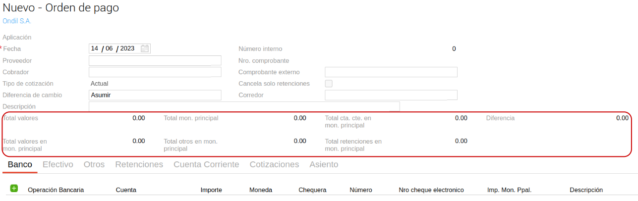 Modificamos los campos correspondientes a la visualización de totales dentro de las órdenes de pago y cobranzas, para que la información arrojada sea más eficiente para el análisis de los importes a cobrar/pagar.