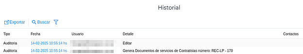 Si el documento genera recepciones de labores automáticamente, en el log del laboreo se detalla la edición en la recepción.