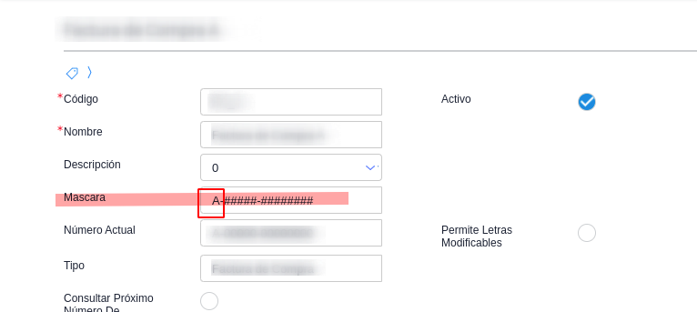 No se puede cambiar la letra del número de comprobante en la máscara del talonario. Al guardar no queda registrado el cambio.