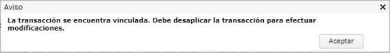 “La transacción se encuentra vinculada. Debe desaplicar la transacción para efectuar modificaciones”