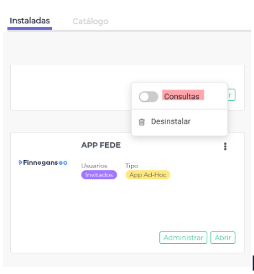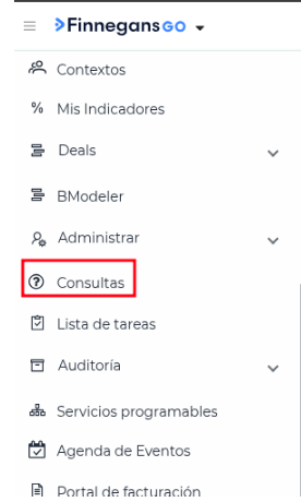 - Dentro de la aplicación - Consultas: Una vez activo el módulo, el usuario verá el acceso “Consultas” dentro de la aplicación a la que fue invitado.