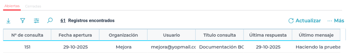 - Visualizará la grilla de consultas y podrá seleccionar la consulta específica para responder.