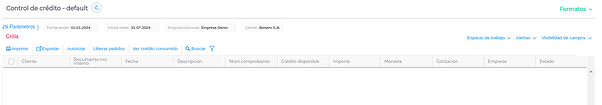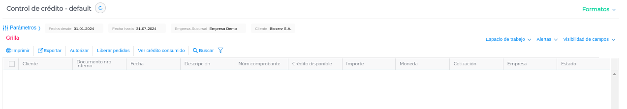 Si se gestionan varias empresas en un mismo espacio de trabajo, es posible configurar un control de crédito, por cliente y por empresa.