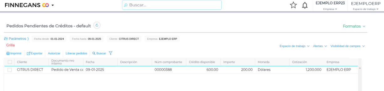 Dentro del informe, se podrán visualizar todos los pedidos pendientes que están bloqueados, por falta de crédito o porque no estén autorizados.