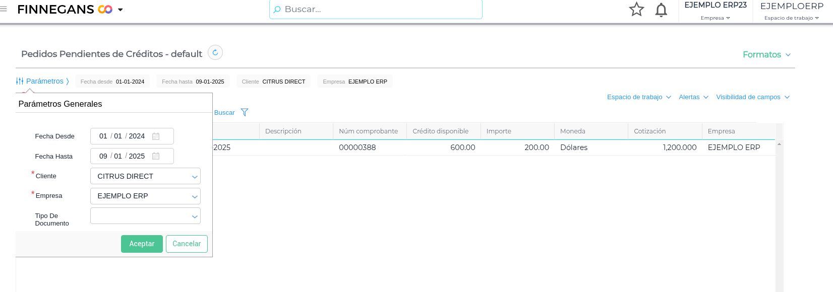- Cliente: se debe elegir un cliente en particular para analizar el crédito disponible y los documentos que consumieron el mismo.