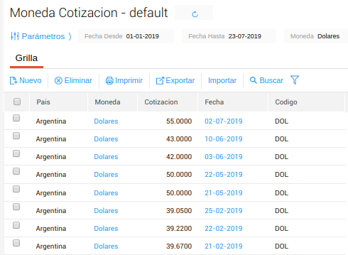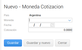 Desde esta opción de menú cargás la cotización para las distintas monedas. Incluso, en los distintos países si tu base es multimoneda.