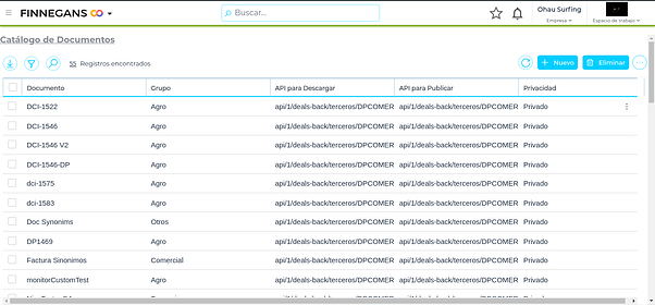 El monitor es una sección de Deals la cual muestra información relacionada a las publicaciones y descargas que se realizan dentro de Deals. Las columnas que podemos visualizar son: Fecha, Hora, ID de Transacción, Nombre del Documento, Status code, Método, Observaciones y Nro reprocesamiento.