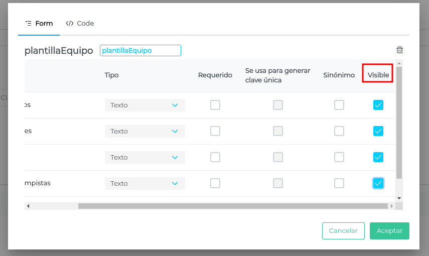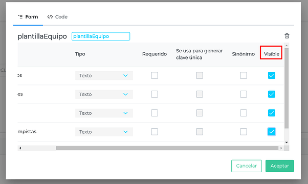 Hacemos click en SCHEMA y le agregamos campos, luego marcamos aquellos campos que queremos visualizar en el monitor, haciendo clic en “Visible”