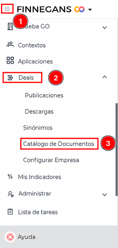 Para personalizar el monitor, es necesario realizar configuraciones en el SCHEMA, en la sección de catálogo de documentos, para esto, accedemos al catálogo de documentos, nos dirigimos al Menú → Deals → Catálogo de documentos.