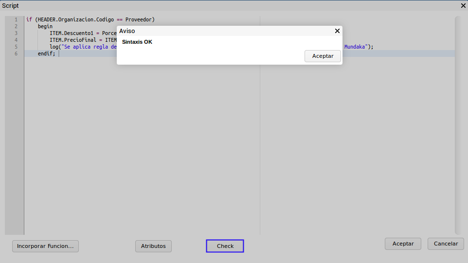 Check: Chequea si la sintaxis de la regla se encuentra bien.