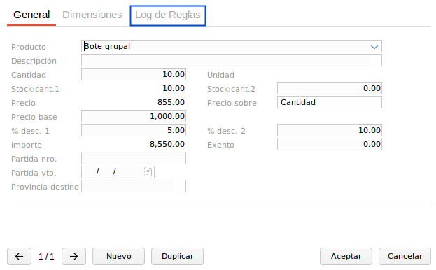 Las reglas de ítem cuentan con la posibilidad de generar un log. Dentro de los ítems en una operación se habilitó una nueva solapa Log de Reglas.