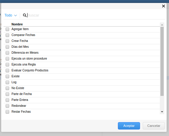 Una de las funciones Ejecutar Reglas, permite ejecutar una regla de tipo ítem desde una regla de tipo global.