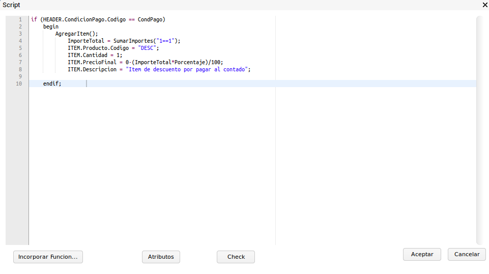 if (ITEM.Producto.Codigo == “Botegrup” and ITEM.Cantidad >= Cantidad)