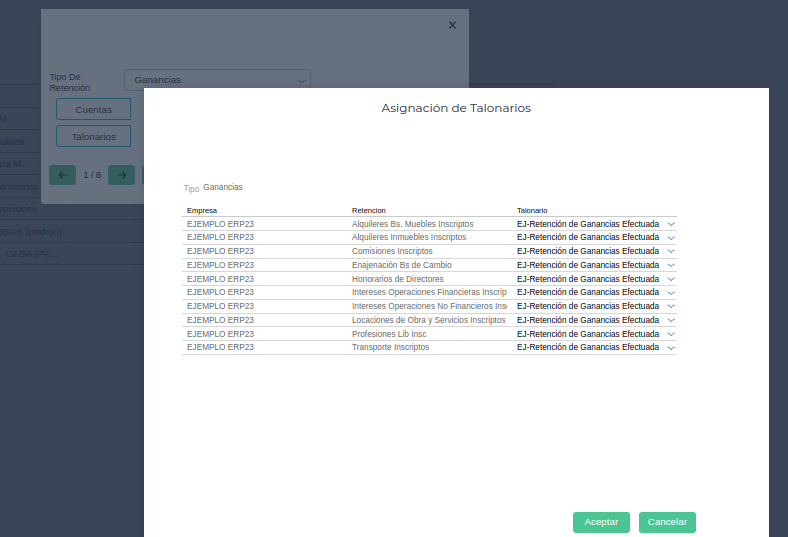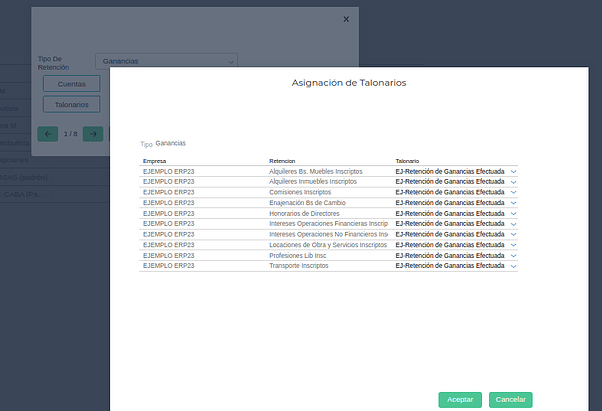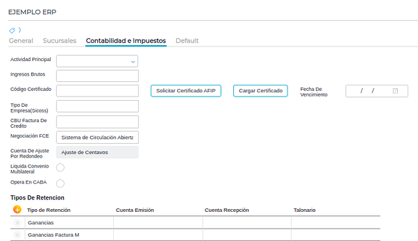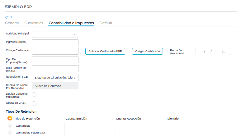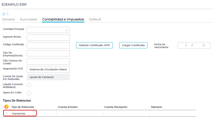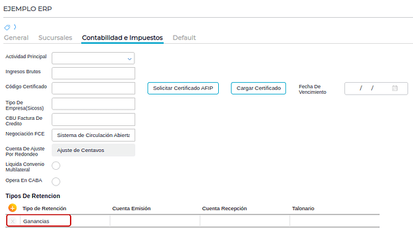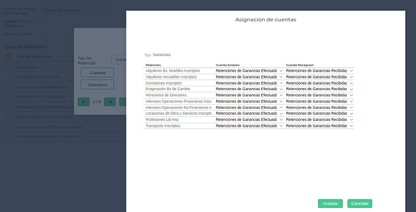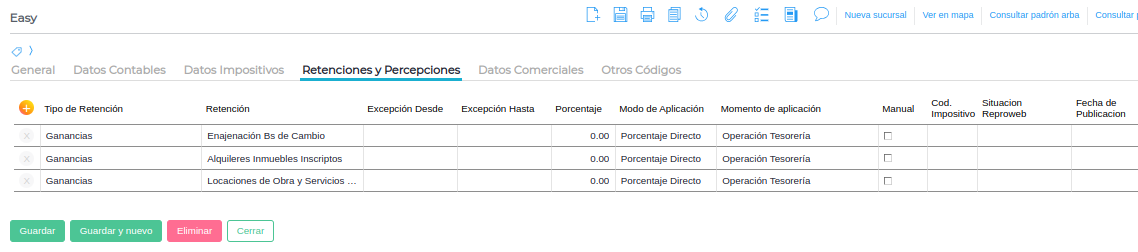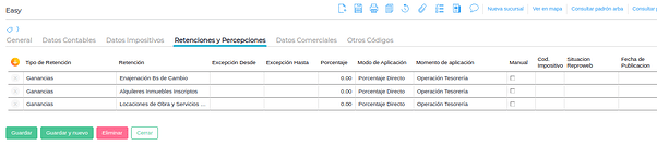 Gestión Empresarial → Impuestos → Maestros → Tipos de retenciones