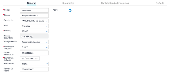 Configuración en ABM Empresa