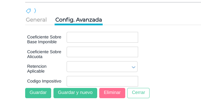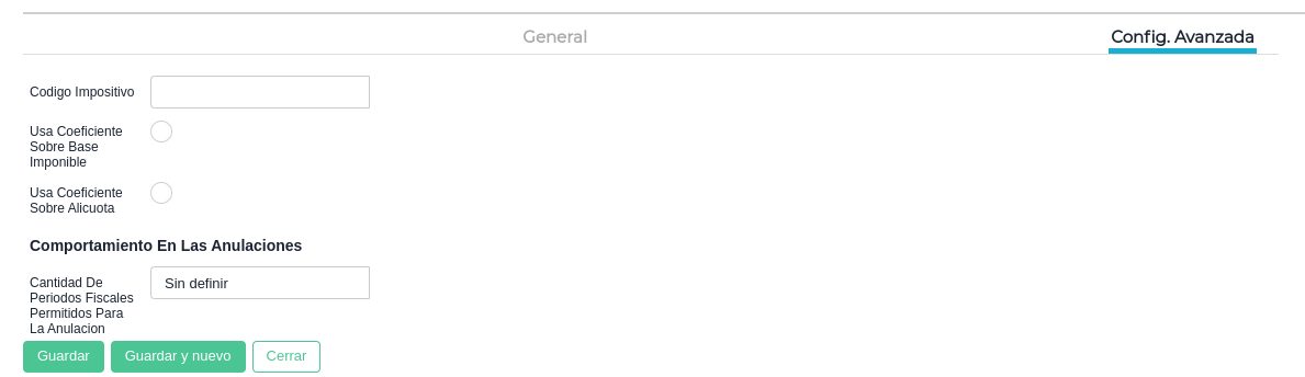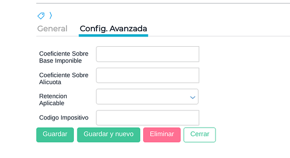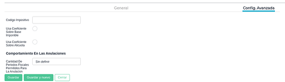 Los registros de esta view tienen una “Solapa General” y una solapa “Config. Avanzada”