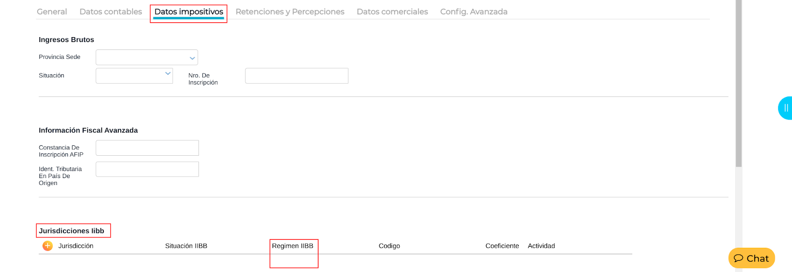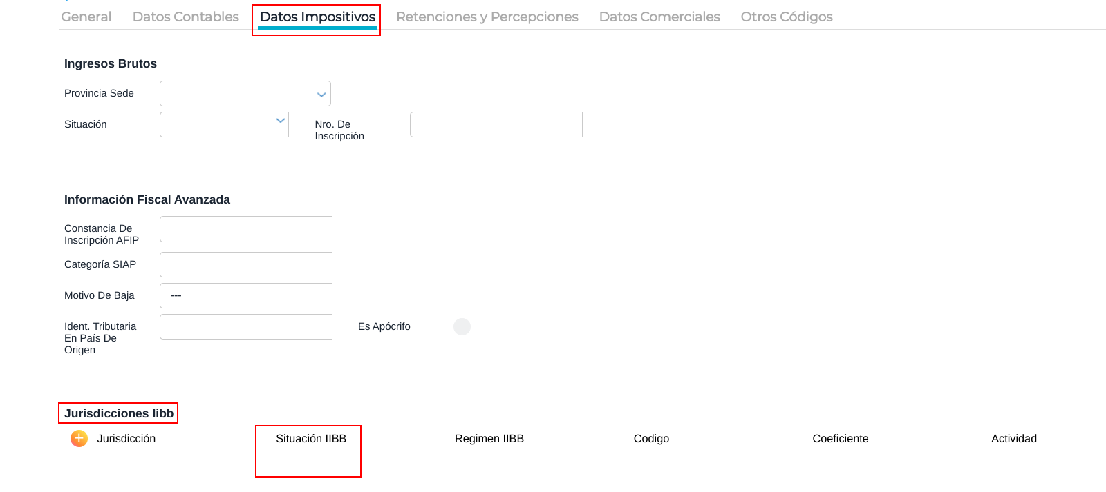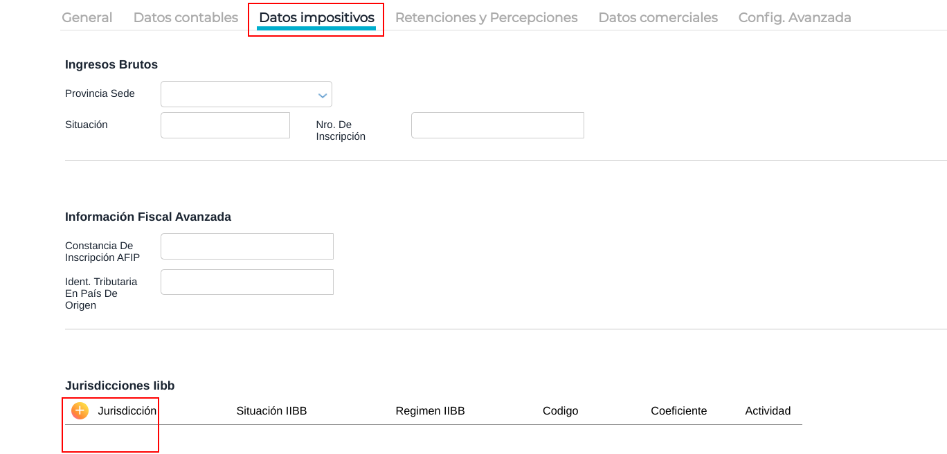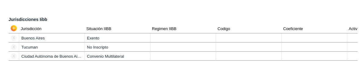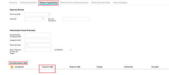 Aquí se debe configurar la o las jurisdicciones donde tributa el tercero estableciendo su situación respecto al impuesto a los Ingresos Brutos.