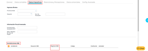 Régimen IIBB: a los fines de generar la retención/percepción en las transacciones el dato de este campo se compara con el campo “Régimen IIBB” que se encuentra configurado en el cliente o proveedor: